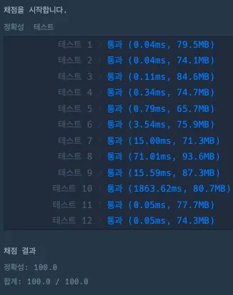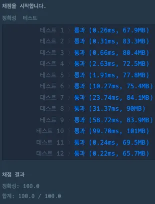 하지만 이렇게 하면 시간복잡도가 O(이 되어 10번 테스트 케이스가 시간초과가 나는데, 아래 최적화를 해줘서 통과함