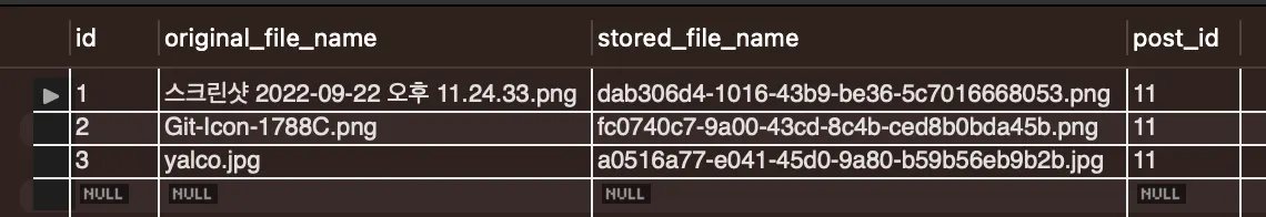 위처럼 컨트롤러에서 파일 업로드를 처리했는데, uploadfile이 DB에 들어가지를 않음