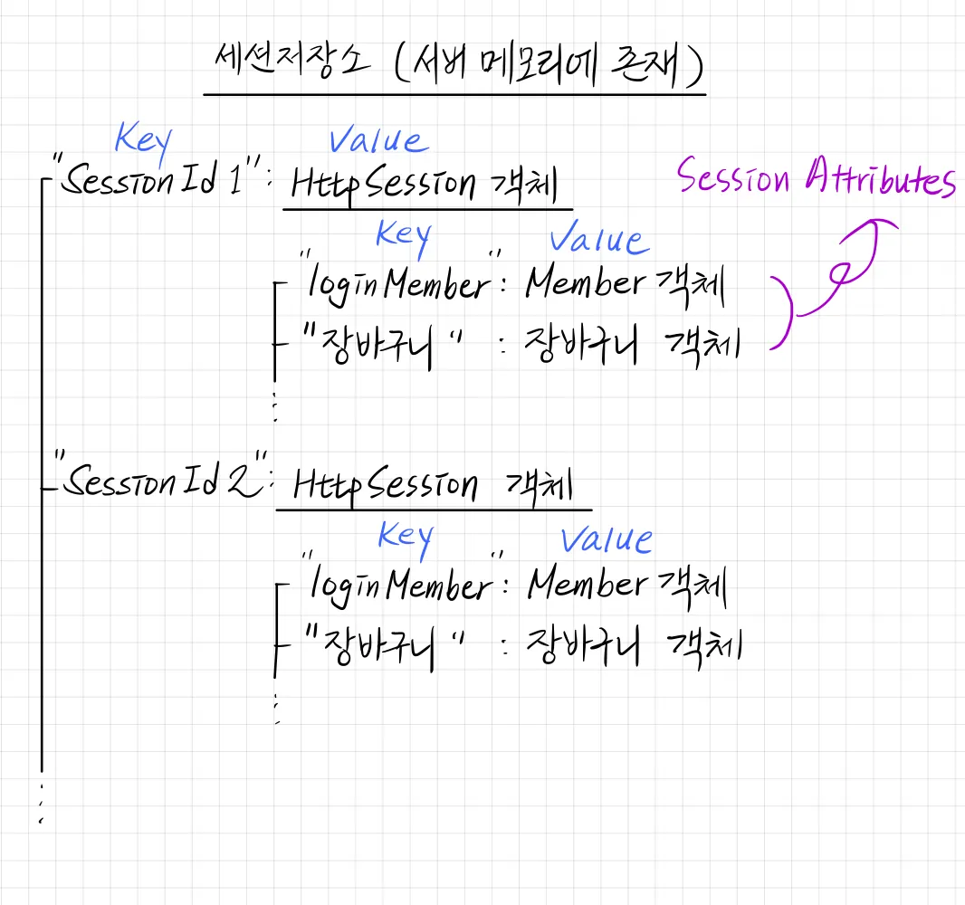 서버의 메모리에는 각각의 SessionID마다 HttpSession 객체가 매핑되어 있음