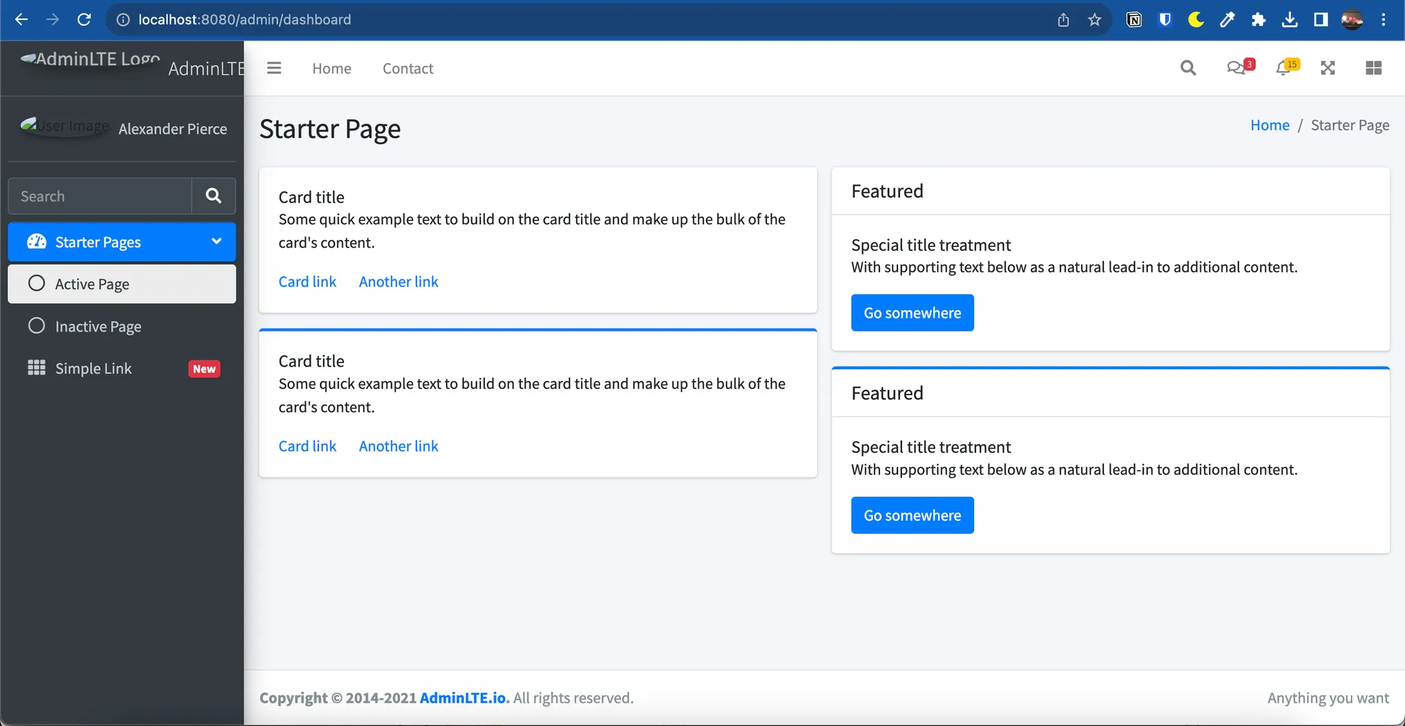 압축 해제한 AdminLTE 폴더 내부를 보면 starter.html 파일이 있다.