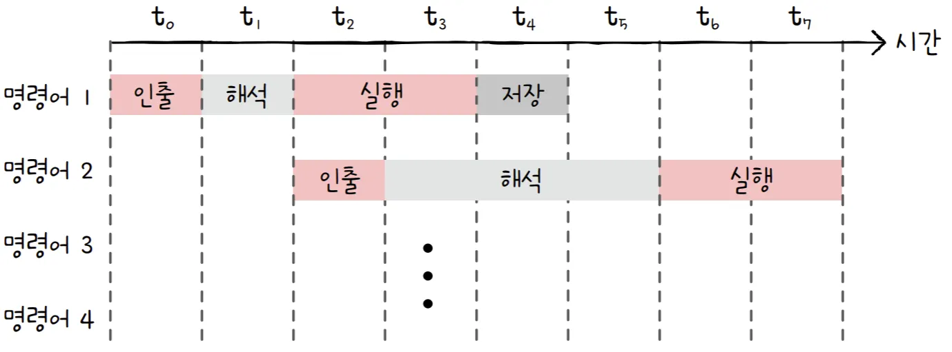 명령어의 크기와 실행되기까지의 시간이 일정하지 않음