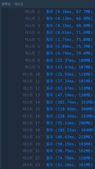 처음엔 아래처럼 중복 코드도 많고 비효율적으로 풀이를 했는데, 아쉽지만 일단 먼저 정답을 맞추고 그 다음 코드를 개선하는 쪽이 그래도 맞는 것 같음. 선 구현 → 후 최적화
