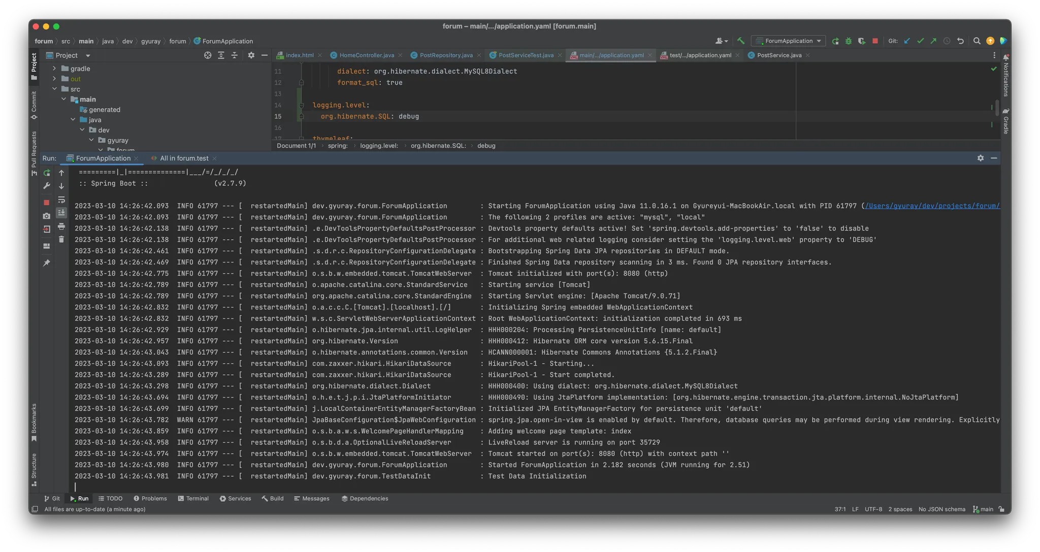 main application.yaml에 다음 추가함