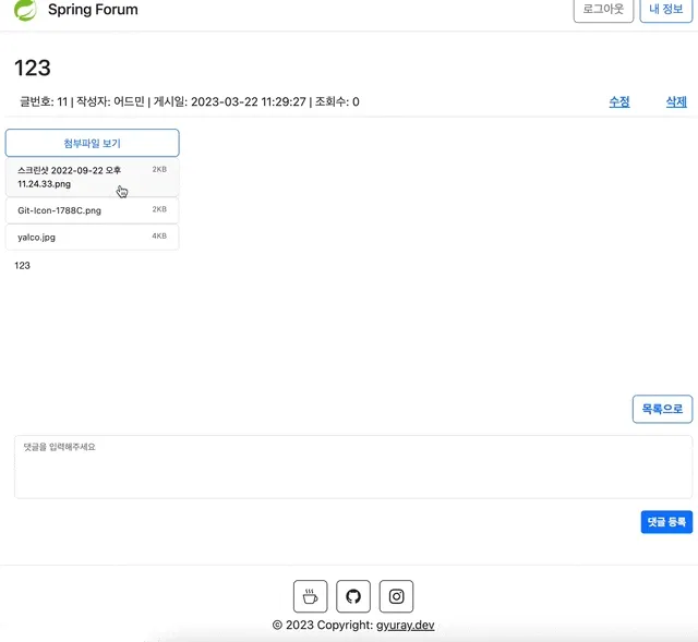 파일 id를 통해 다운로드할 수 있도록 함(다운로드 권한 등을 추후 기능을 가정)