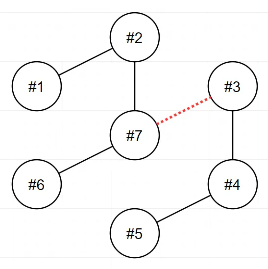 7 | [[1,2],[2,7],[3,7],[3,4],[4,5],[6,7]] | 1 |