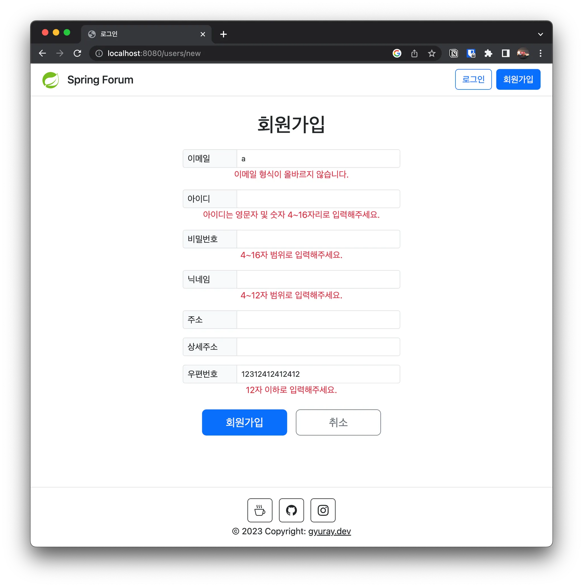 @Size(max = 12, message = "12자 이하로 입력해주세요.")