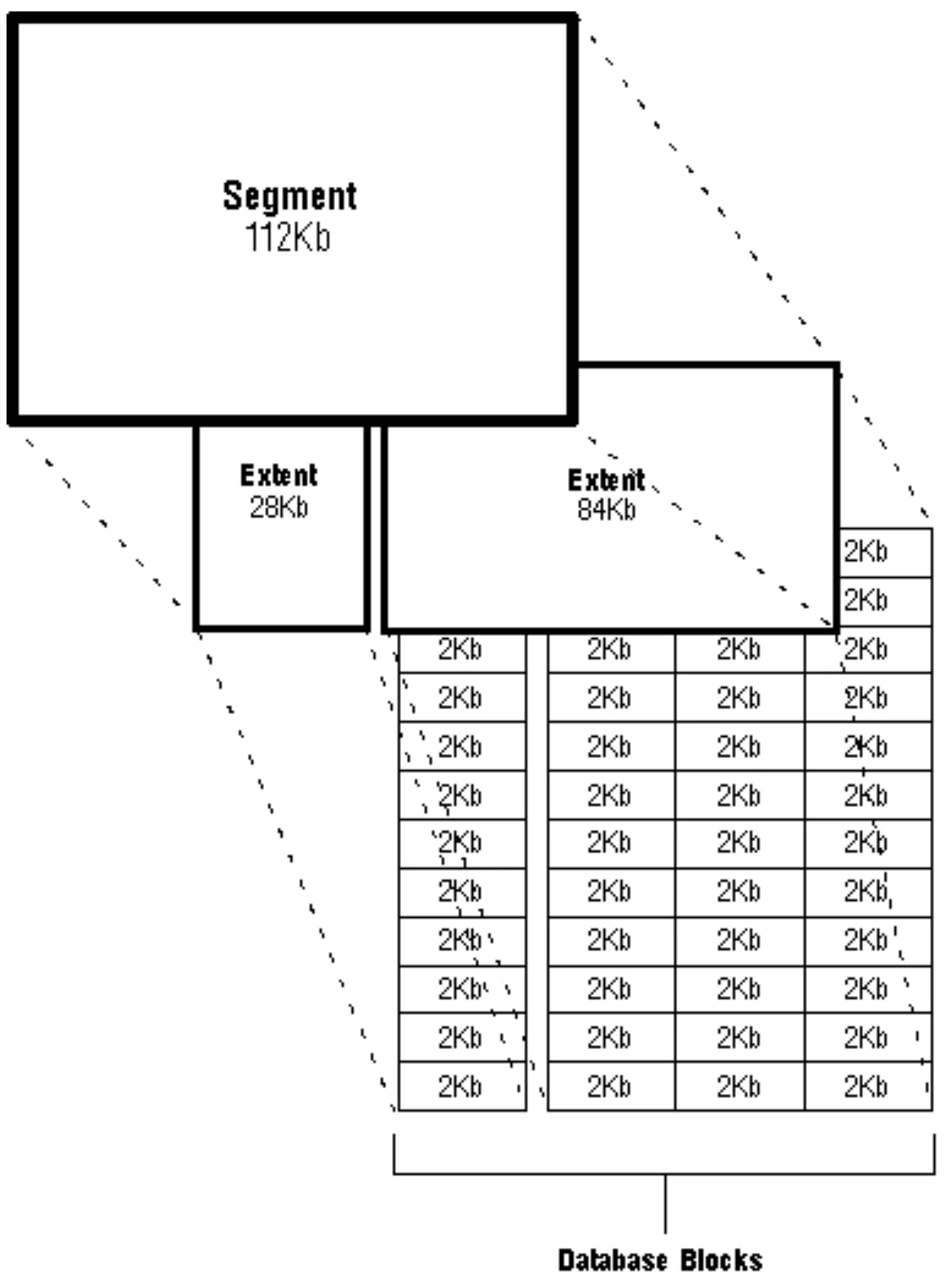 예를 들어 각 테이블의 데이터는 데이터 세그먼트(data segment)에, 인덱스는 인덱스 세그먼트(index segment)에 저장됨