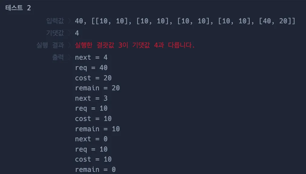 아래는 처음에 각 던전을 돈 후에 돌 수 있는 던전 수가 가장 많은 던전을 선택하는 그리디 알고리즘을 써서 틀린 풀이