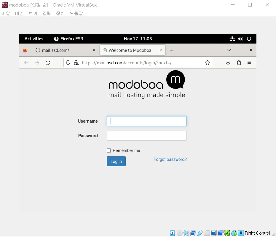 Debian에 기본 설치된 firefox로 가서 https://mailasd.com으로 접속해본다.