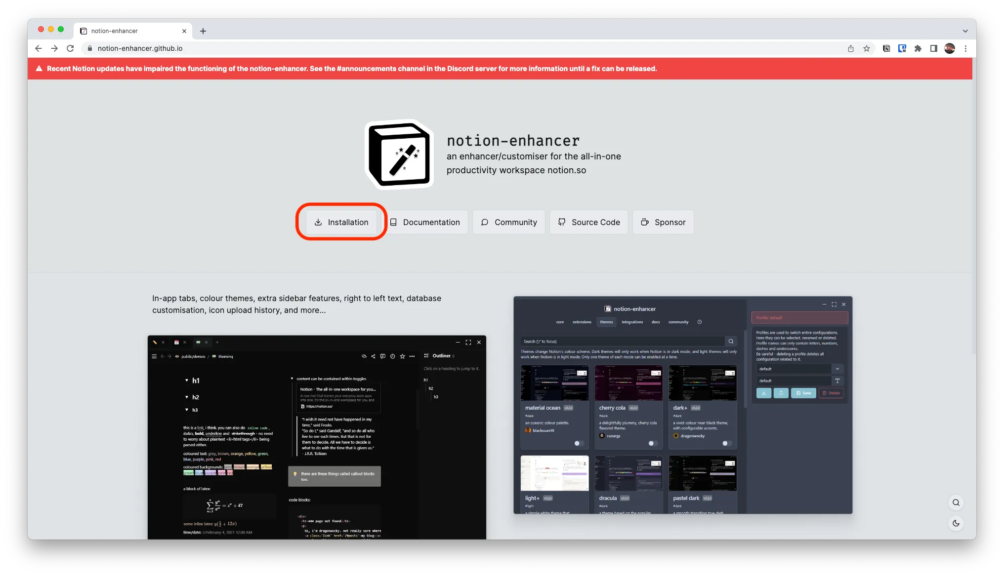 Notion Enhancer는 Notion에 여러 플러그인을 붙여 부가기능을 사용할 수 있는 앱이다. 코드 블럭에 줄 번호 매기기, 들여쓰기 라인 표시 등 다양한 플러그인을 제공한다.