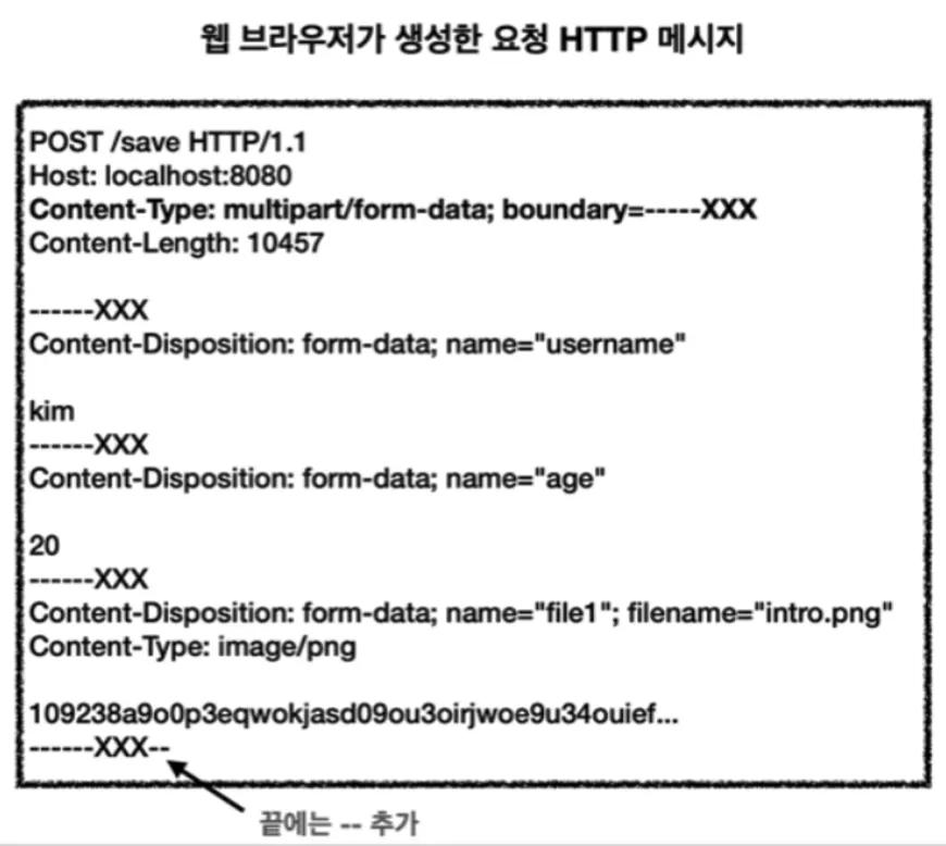 HTML form에서 문자와 바이너리 등 여러 데이터 형식을 동시에 전송해야 할 때 content-type으로 multipart/form-data 을 사용함