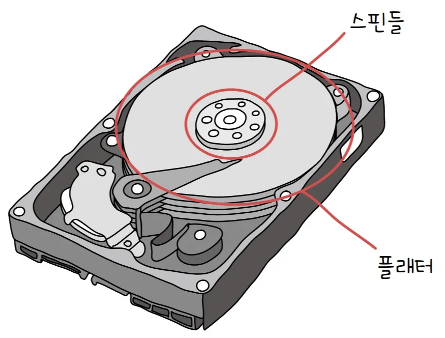 : 플래터를 대상으로 데이터를 읽고 쓰는 구성요소