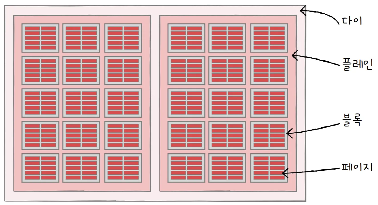 : 블록이 모여 만들어진 단위. 플래시 메모리의 읽기/쓰기 단위