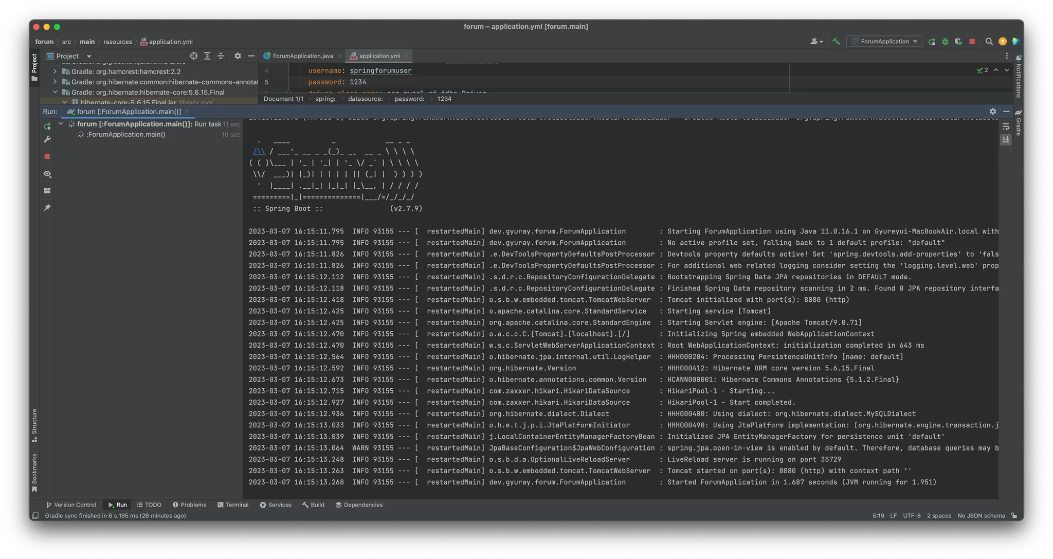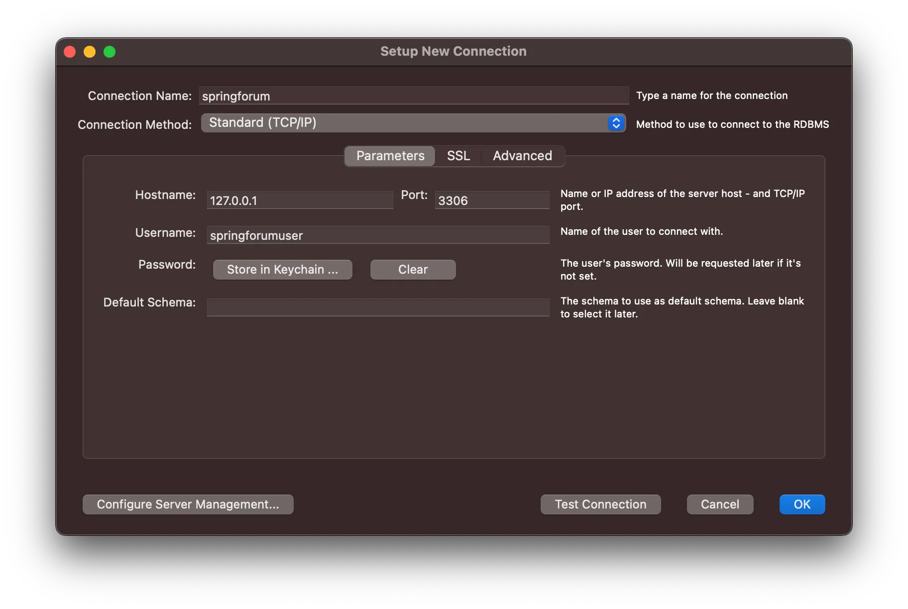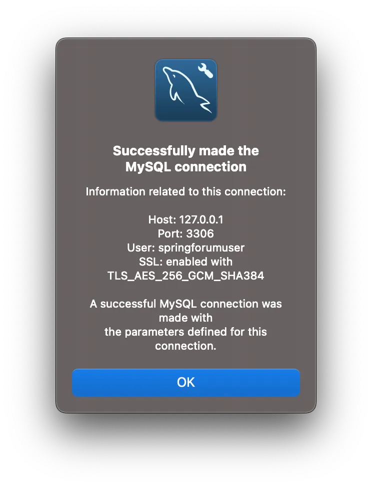 $ mysql -hlocalhost -uspringforumuser -p springforumdb