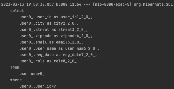 게시글 조회 시 마지막에 user 관련 select문이 나감