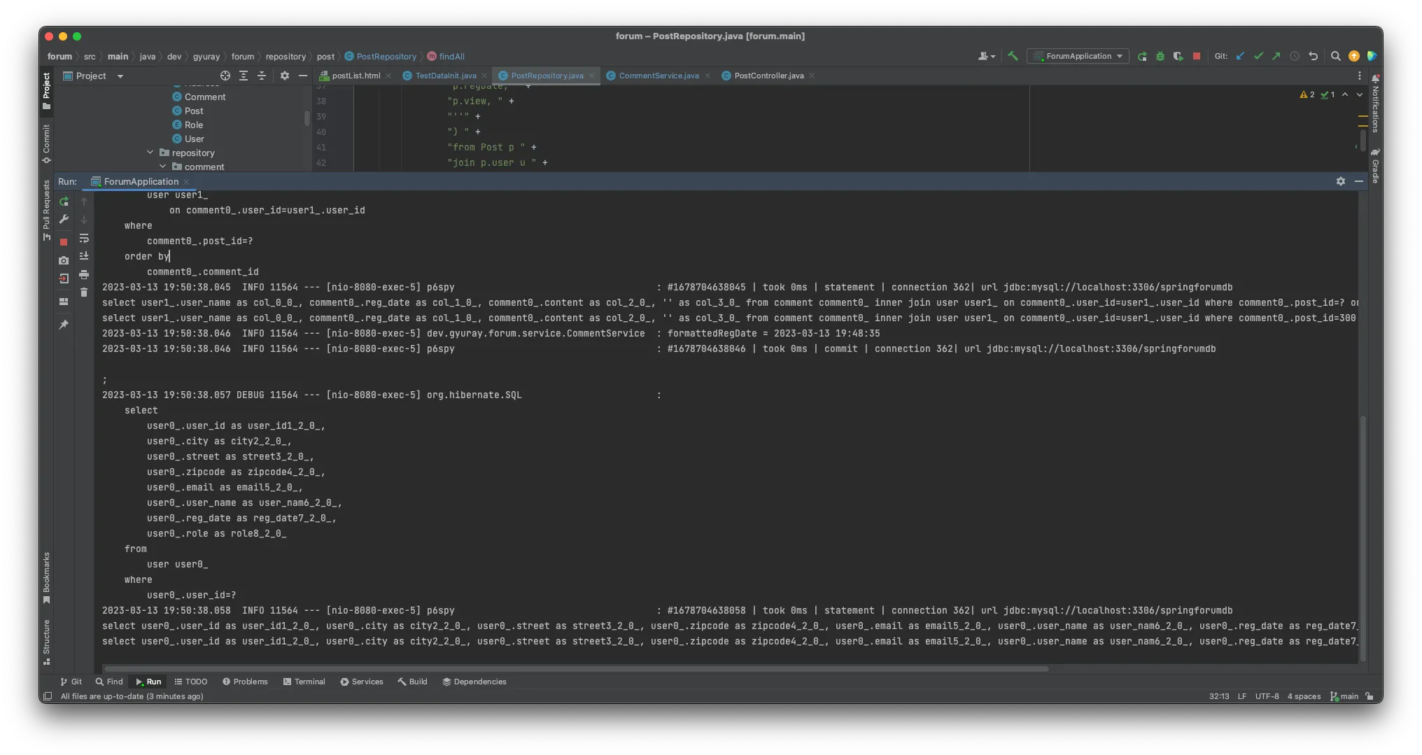 postView를 보니 user에서 name을 직접 참조하기 때문에 생기는 일인 것 같음. 이 부분을 주석처리하면 select 문이 나가지 않음. 만약 여기서 DTO를 쓴다면 select문이 나가는 것을 막을 수는 있겠지만 join문이 일어날 것임. 나중에 DB를 더 공부하고 성능테스트를 해봐야겠음. //TODO_STUDY