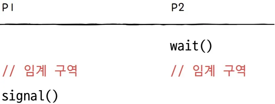 즉, P1이 먼저 실행되든P2가 먼저 실행되든 반드시 P1, P2 순서대로 실행됨