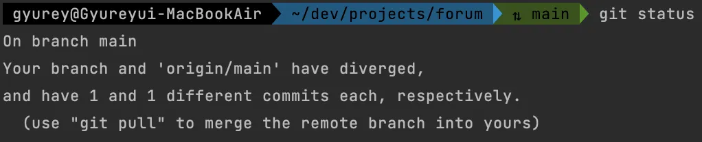 현재 상태 - 원격 저장소랑 완전히 달라져버림