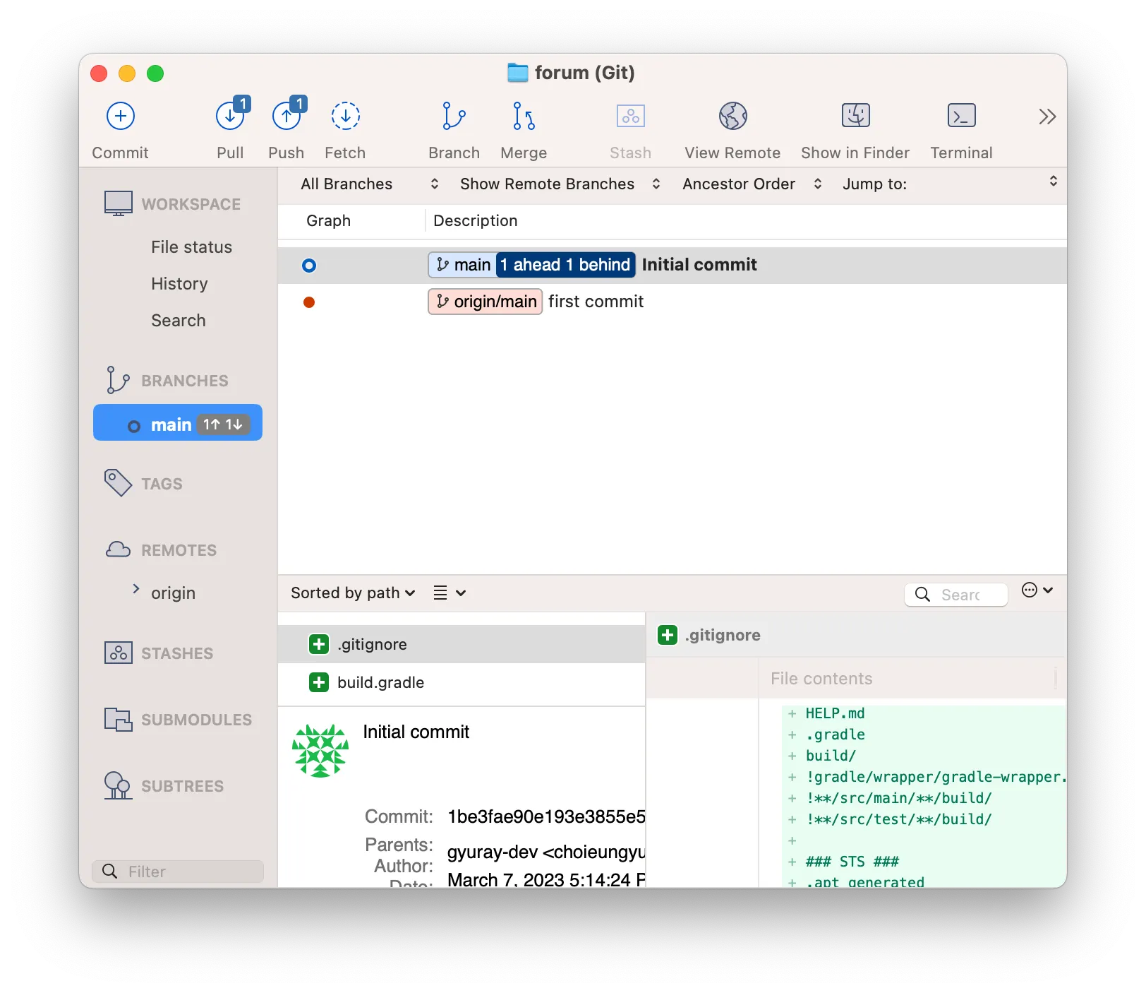 first commit → Initial commit으로 변경 성공