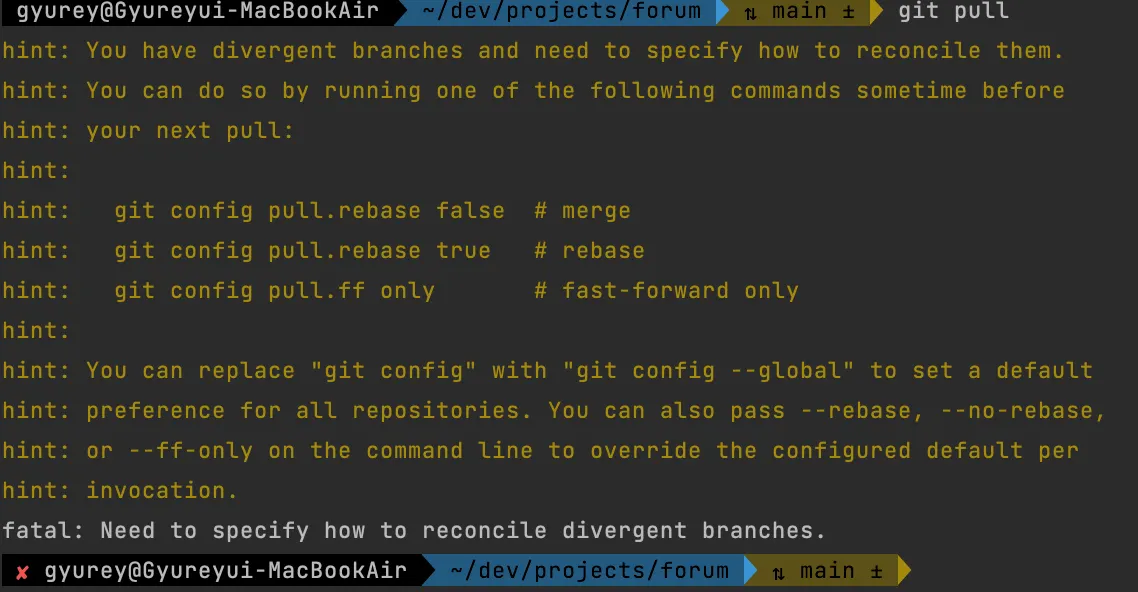 메시지대로 git pull을 해도 똑같았을까? 궁금해짐