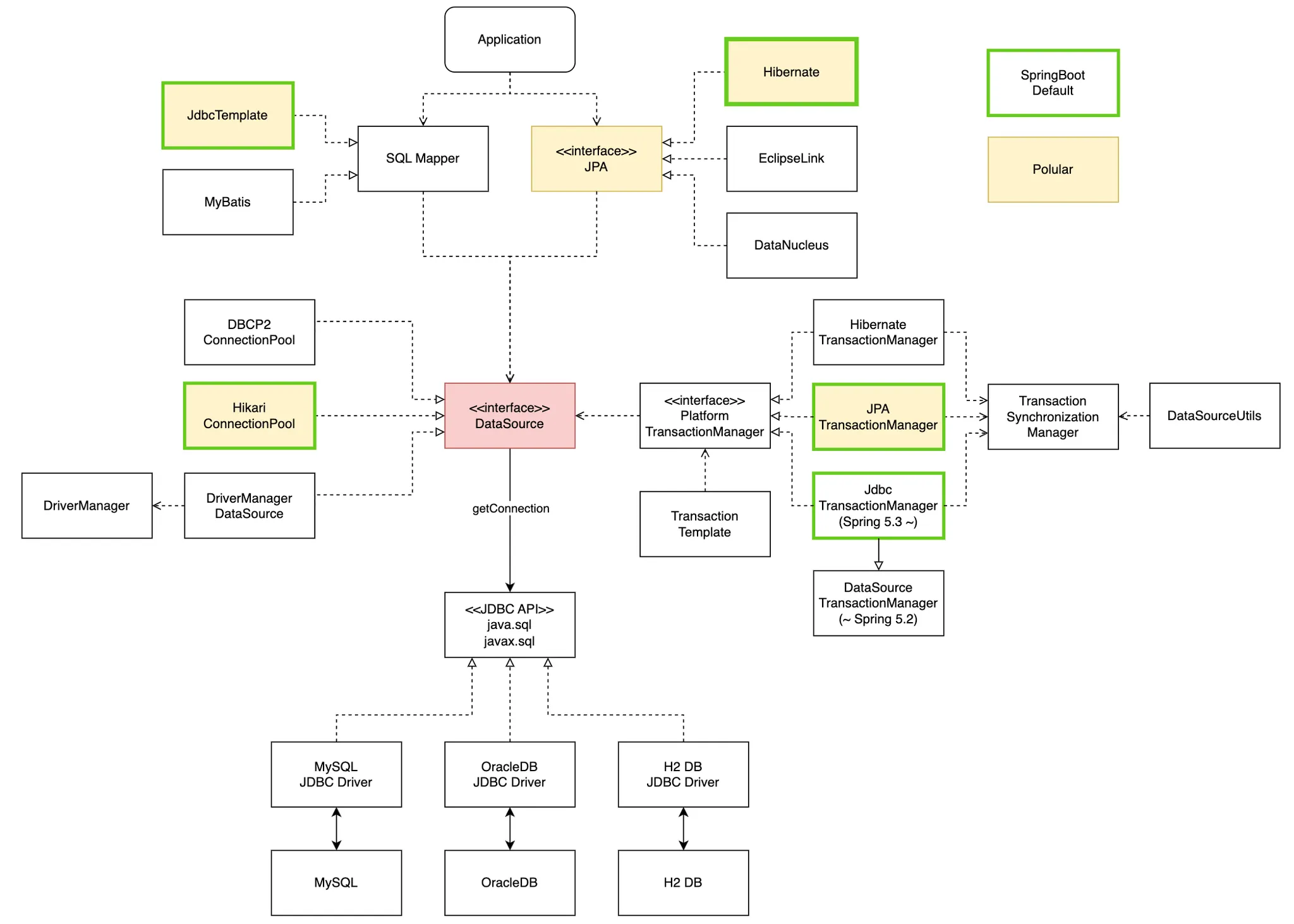 DataSource는 스프링에 자동 등록되는 빈을 주입받으면 됨(default HikariDataSource)
