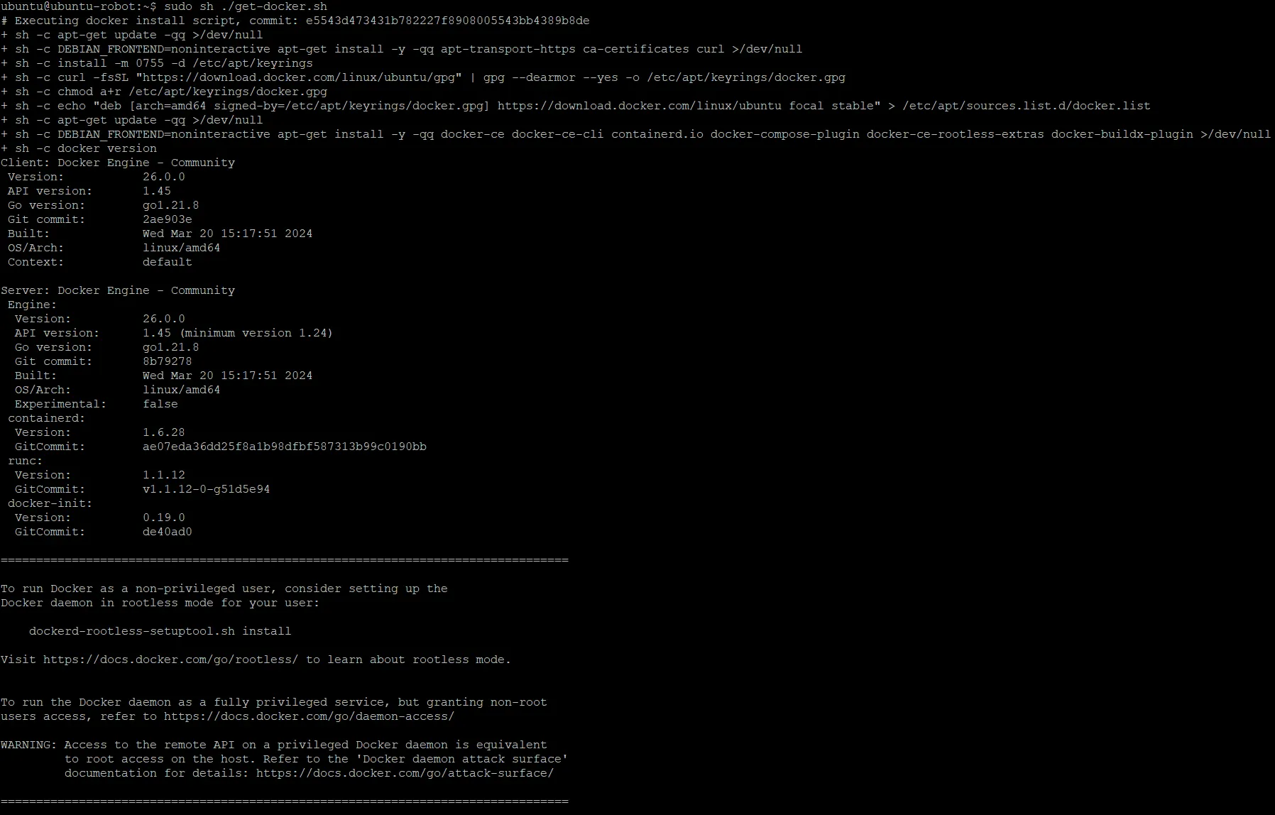 $ sudo sh ./get-docker.sh