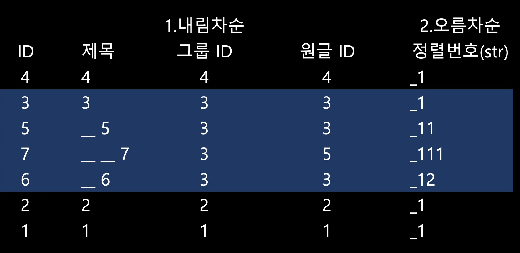 나는 트리 구조를 표시하는 정렬용 컬럼을 만들어서 사용하기로 함