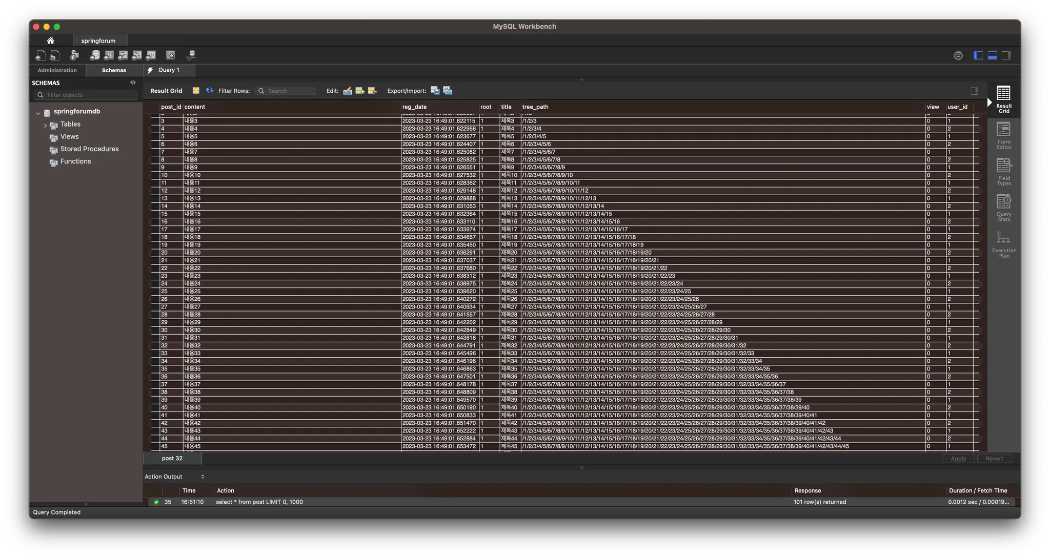 treePath는 id를 발급받아야만 넣을 수 있는데, 이렇게 하면 NotNull 조건에 위배돼서 insert 전에 가짜 값을 넣어줘야 하는 문제가 생김. 그래서 NotNull 제약조건은 없앰