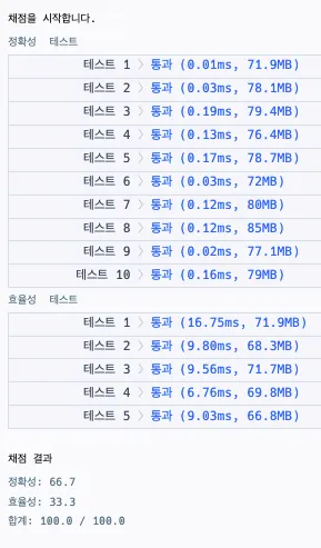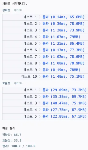 시간복잡도가 이라 효율성 테스트를 대비해 최솟값 조건을 넣었는데, 길어진 코드 양 대비 큰 속도 차이는 없었음(약 10ms 단축). 간략화하면 아래와 같음
