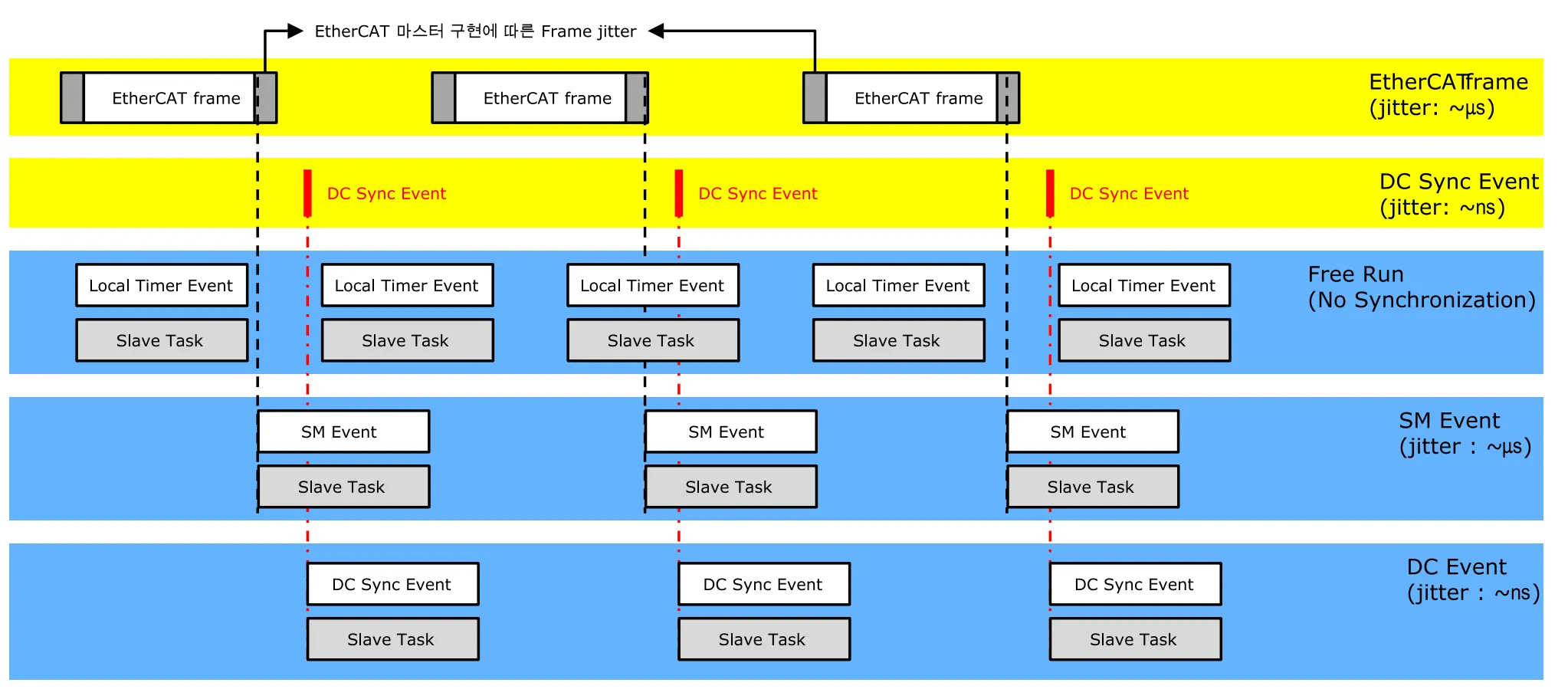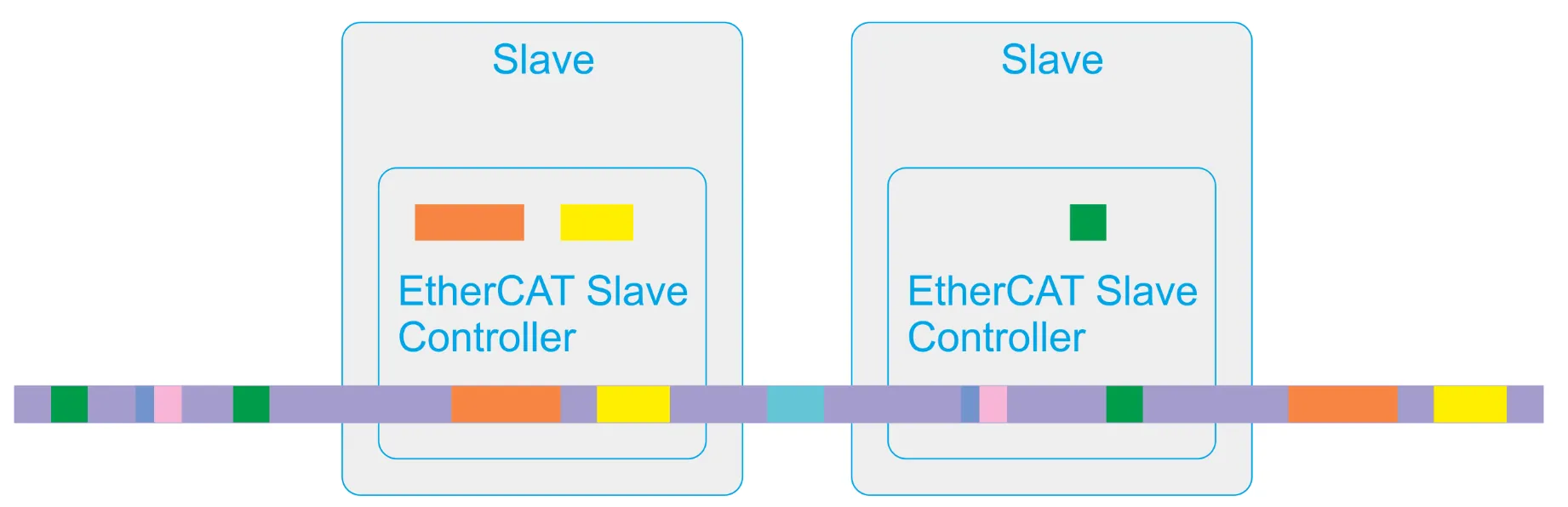 각 EtherCAT 슬레이브 장치는 내부에 EtherCAT Slave Controller(ESC)를 내장하고 있다.
