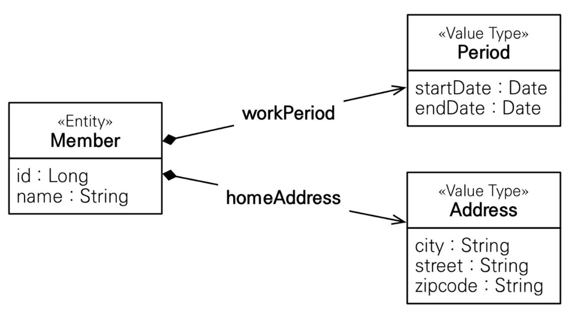 다른 값 타입(주로 기본 값 타입)을 모아서 만든 값 타입