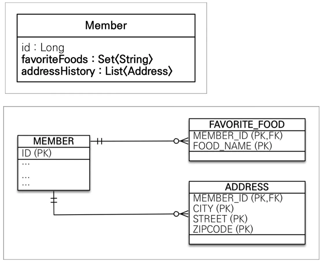 식별자가 필요하고, 지속해서 값을 추적, 변경해야 한다면 값 타입 컬렉션을 엔티티로 승격시킨 후 영속성 전이와 orphanRemoval 기능을 사용해 값 타입 컬렉션처럼 사용해야 함