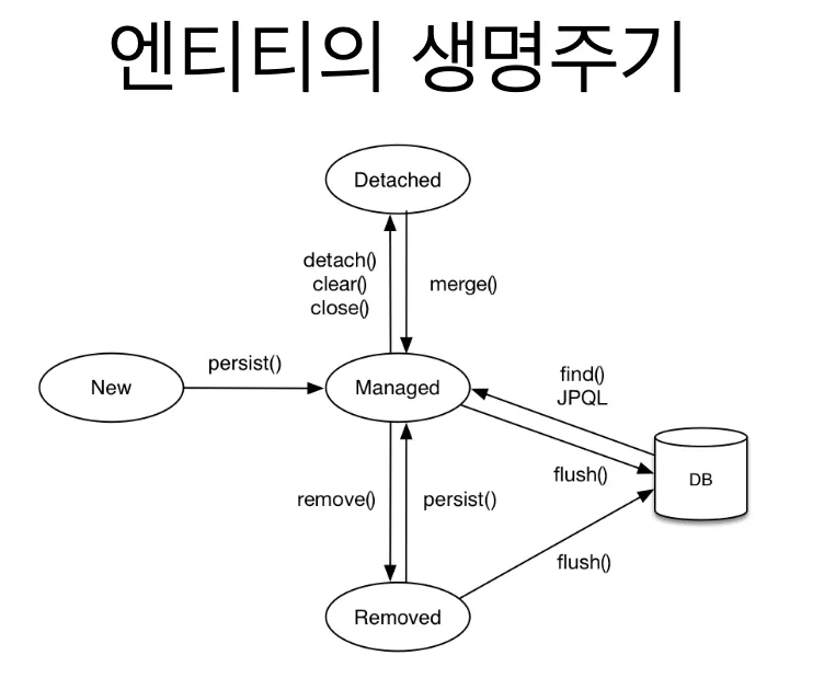엔티티가 영속성 컨텍스트에 들어온 순간의 상태가 스냅샷으로 저장되어, 이후 변경이 발생하면 JPA가 이를 감지해서 자동으로 update 쿼리를 보냄(Dirty Checking)