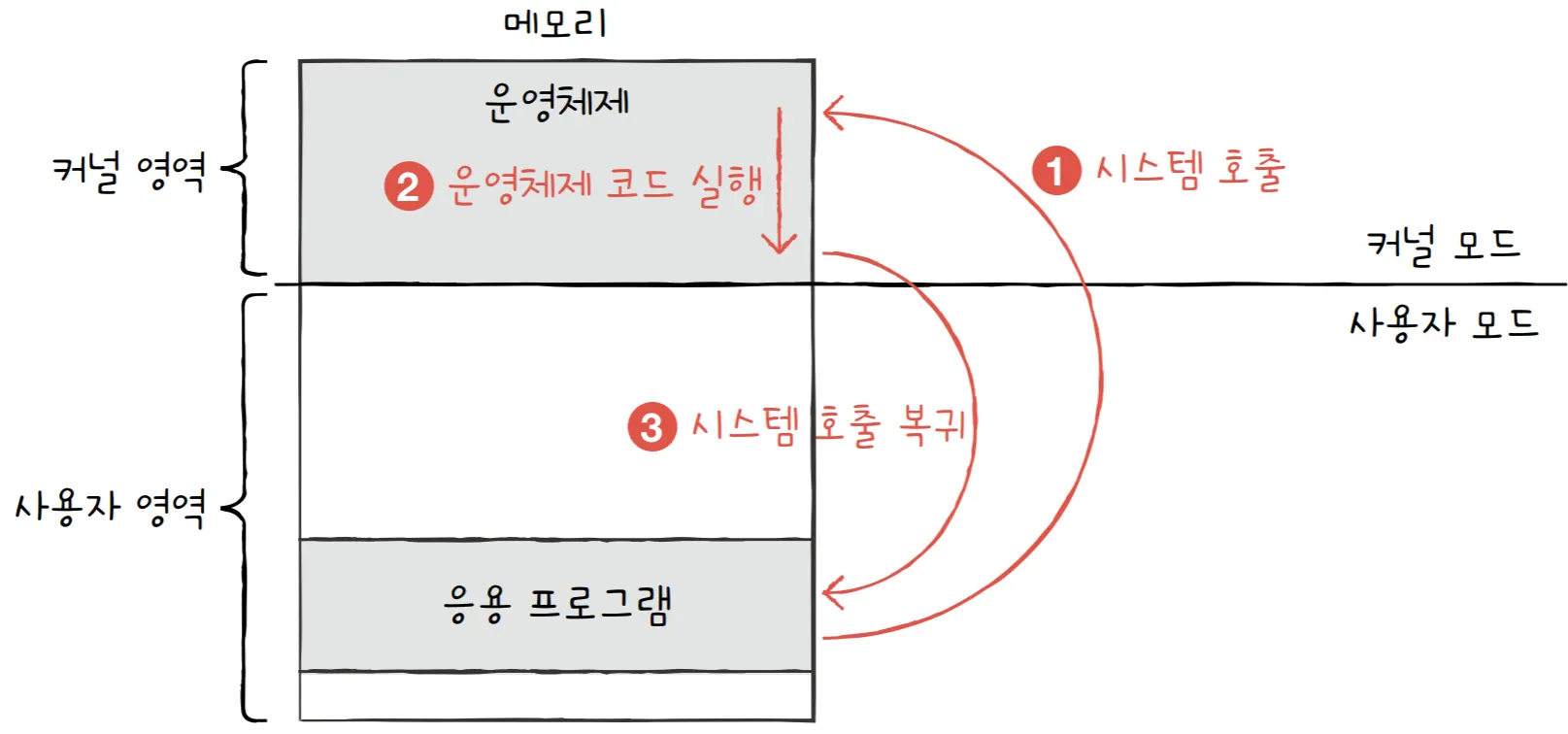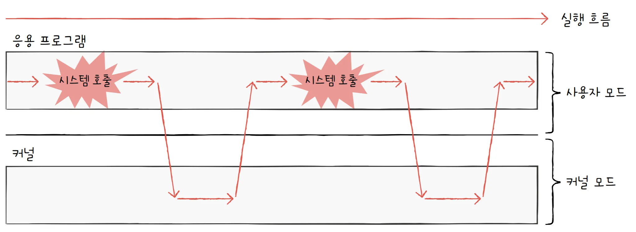 :  사용자 모드로 실행되는 프로그램이 자원에 접근하는 운영체제 서비스를 제공받으려면 운영체제에 요청을 보내 커널 모드로 전환되어야 하는데, 이때 운영체제 서비스를 제공받기 위한 요청