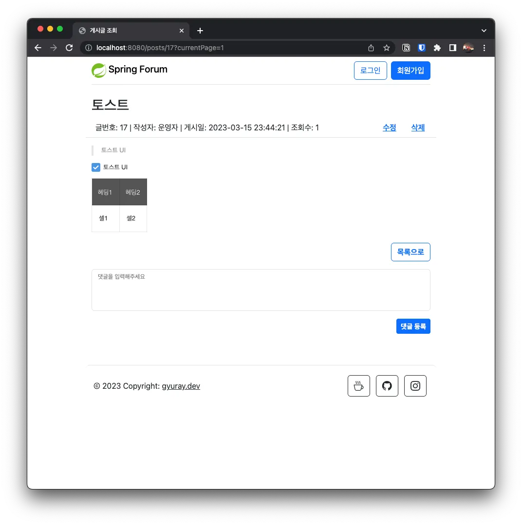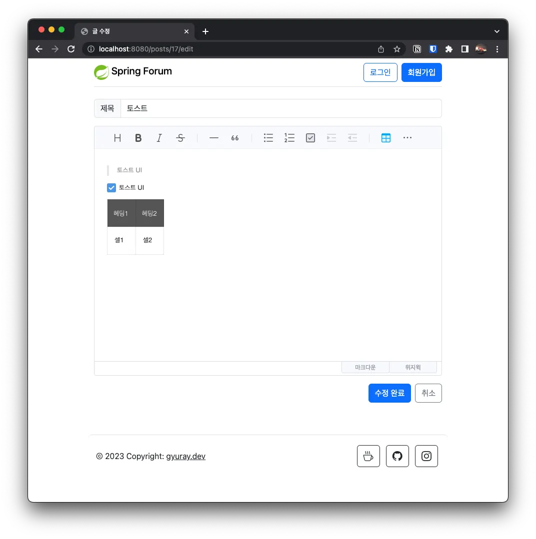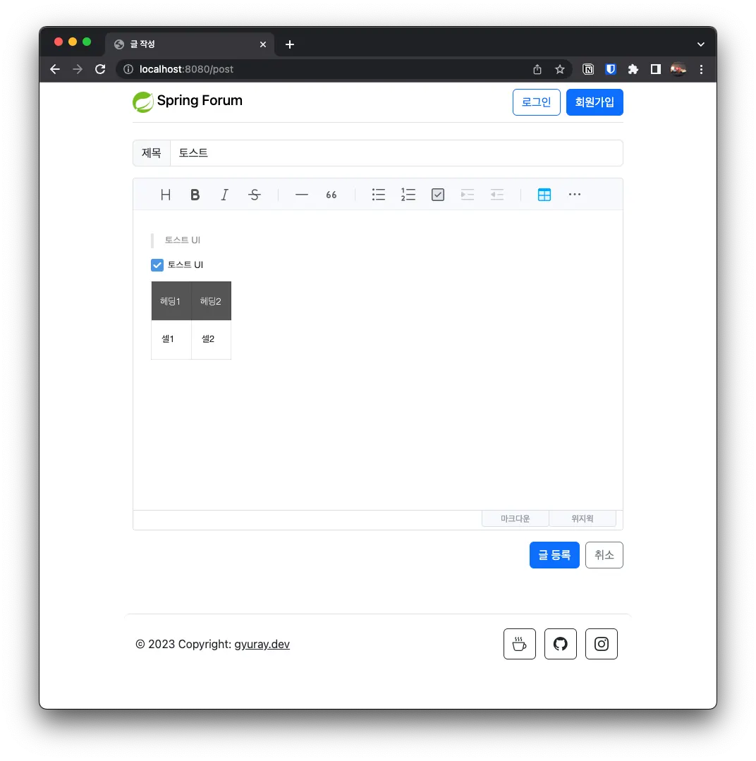 연습용 게시판을 만드는 중 심플하고 예쁜 국산 에디터 Toast UI Editor를 적용해보기로 함