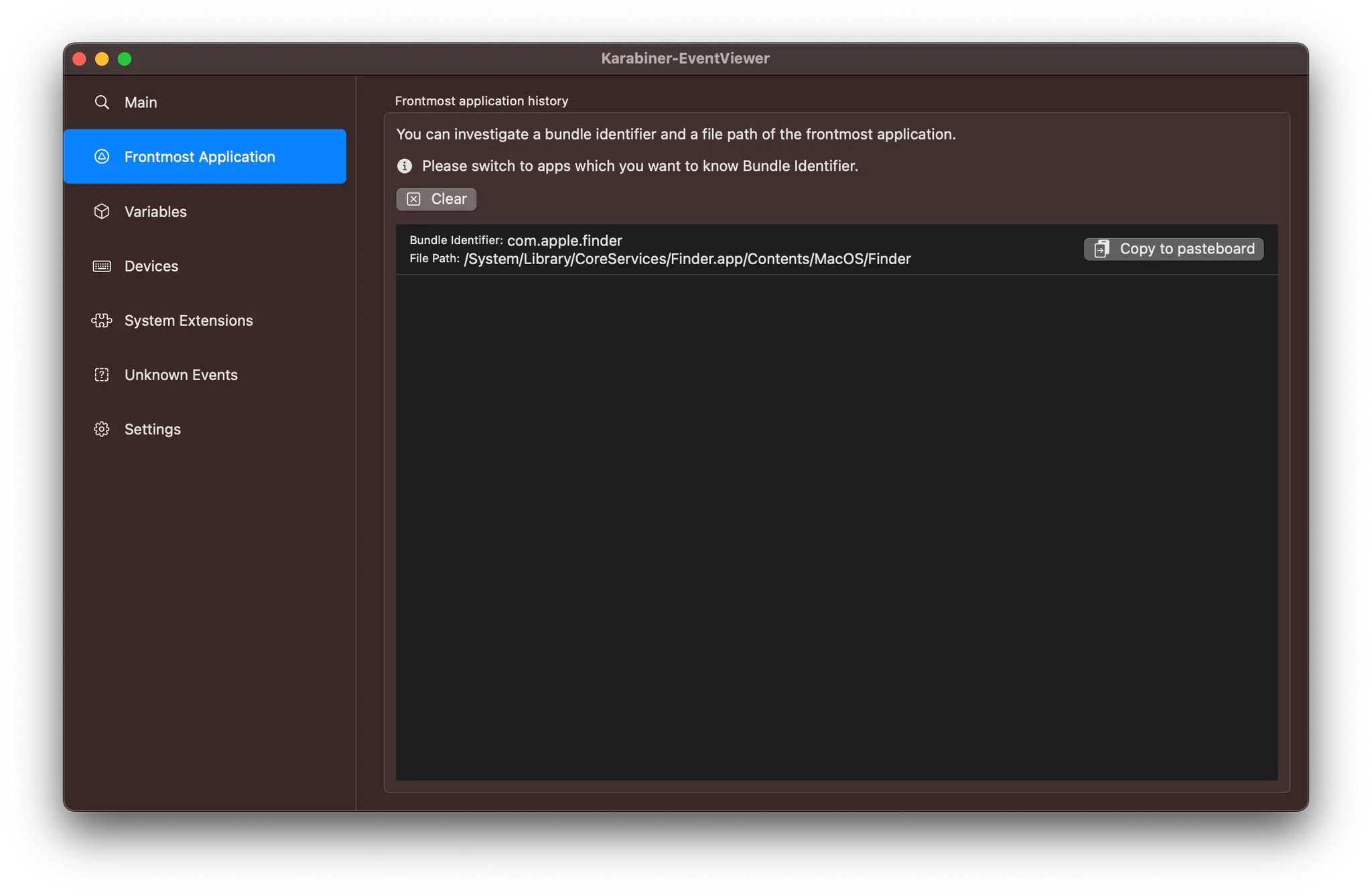특정 앱에서만 쓰고싶은 매핑을 설정할 때, 해당 앱의 id(Bundle identifier)를 알아낼 때 사용한다.