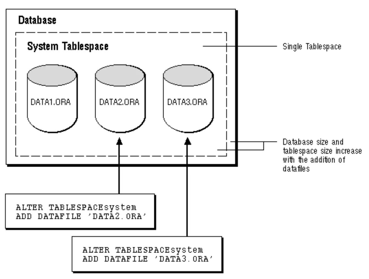 테이블스페이스는 하나 이상의 데이터파일로 이루어져 있음