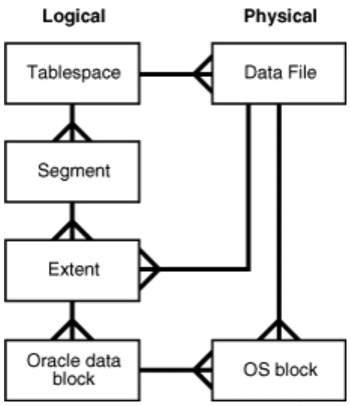 오라클 내부에서는 데이터 블록(data block), 익스텐트(extent), 세그먼트(segment), 테이블스페이스(tablespace)라는 논리적 단위로 데이터를 관리함