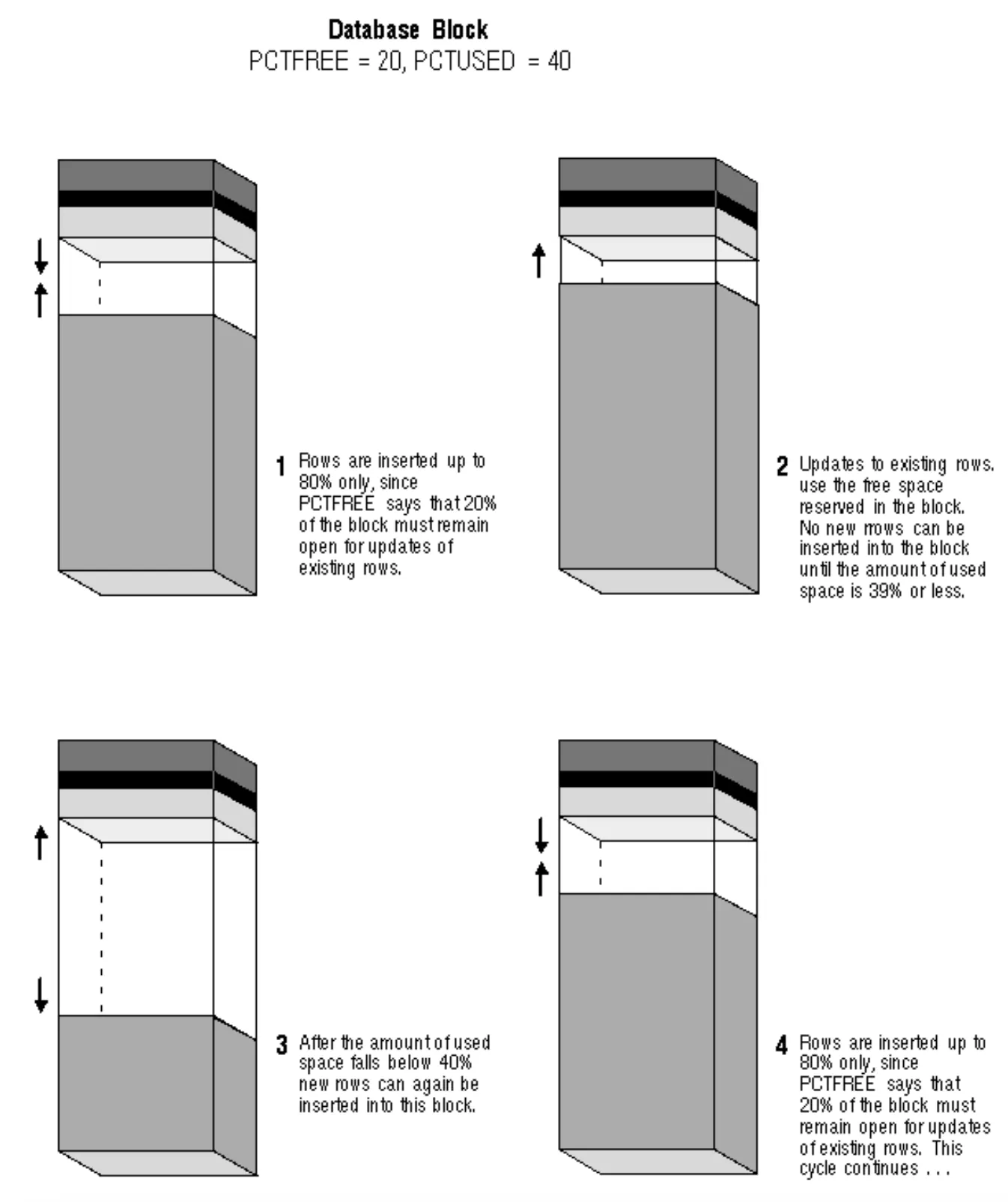 블럭 내부는 약 80%까지만 새로운 행으로 채워지고, 나머지 20%는 업데이트를 위해 남겨둠